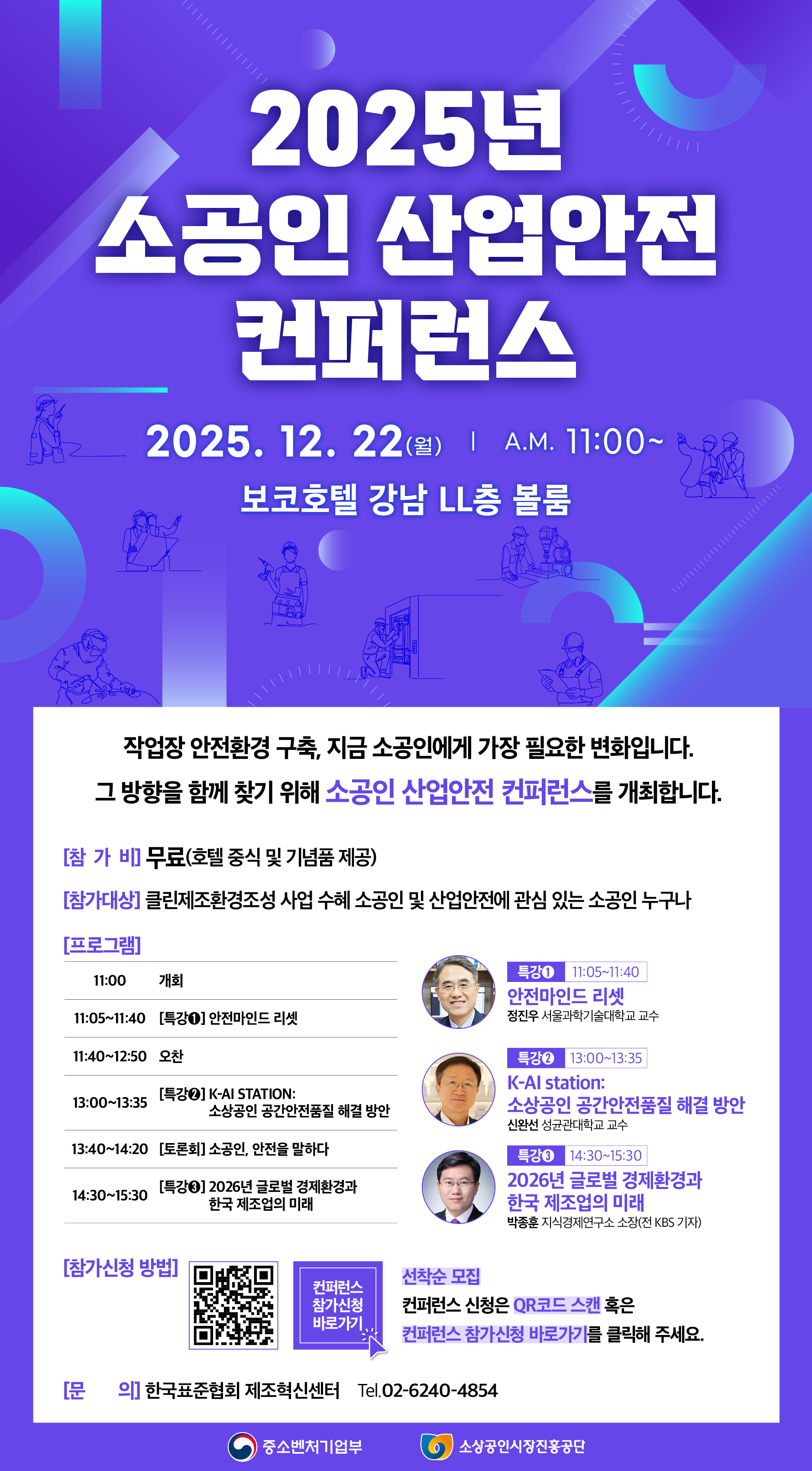 한국표준협회는 소공인의 안전한 현장 구축과 안전장비 도입에 대한 타당성을 소개하고자 소공인 산업안전 컨퍼런스를 개최하고자 합니다.