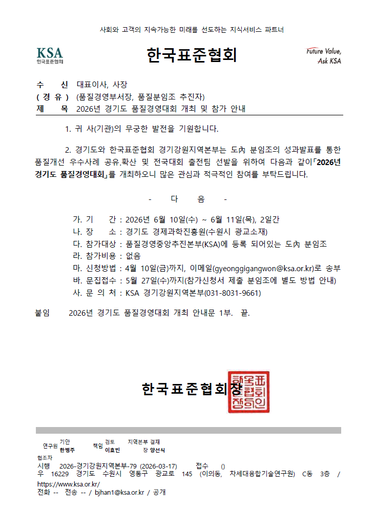 712 2026년 경기도 품질경영대회 개최 안내 /bbs/ksa_kr/190/1590155/artclView.do 2026-03-17 16:38:19.0 한병주 품질서비스