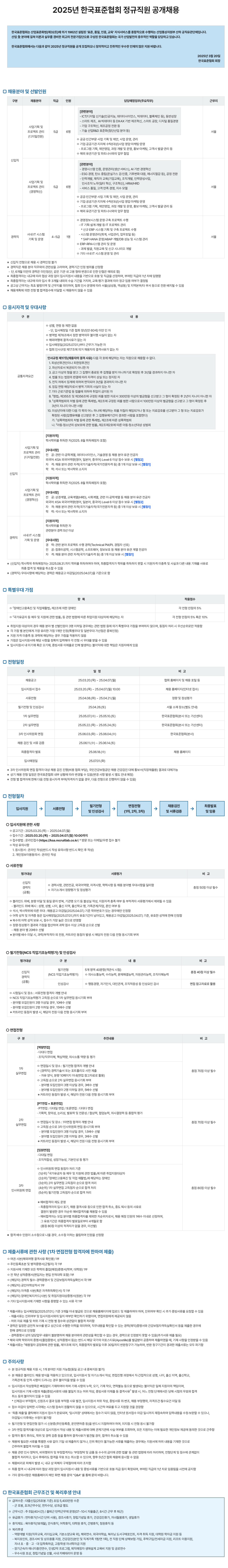 2025년 한국표준협회 정규직원(신입/경력) 공개채용 공고